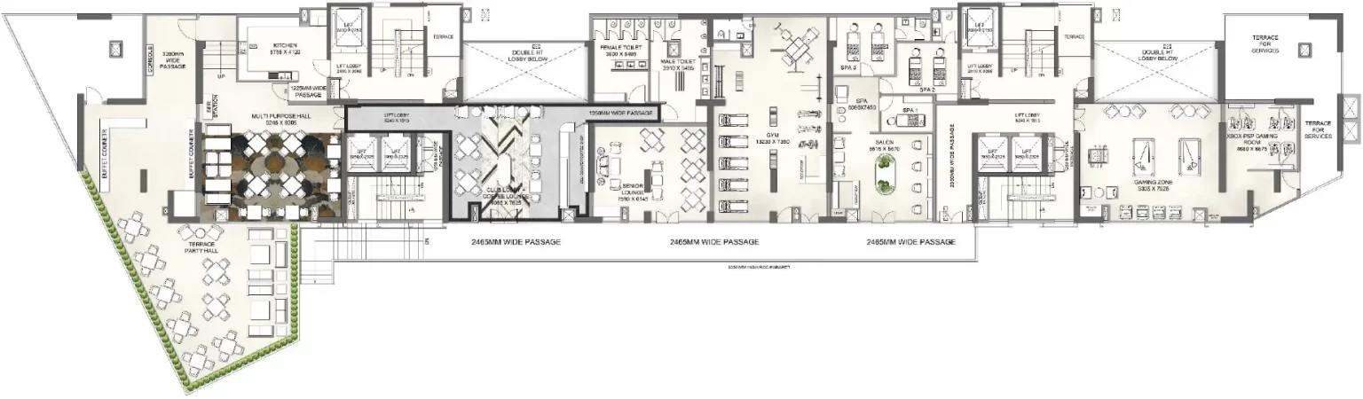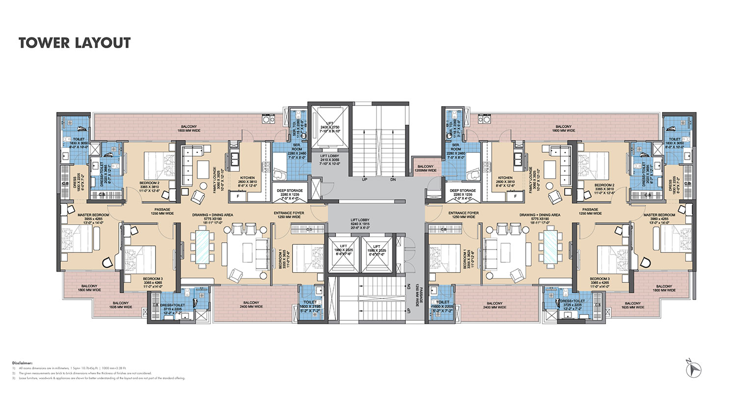 2 Dedicated Lifts per floor with Separate Service Lifts